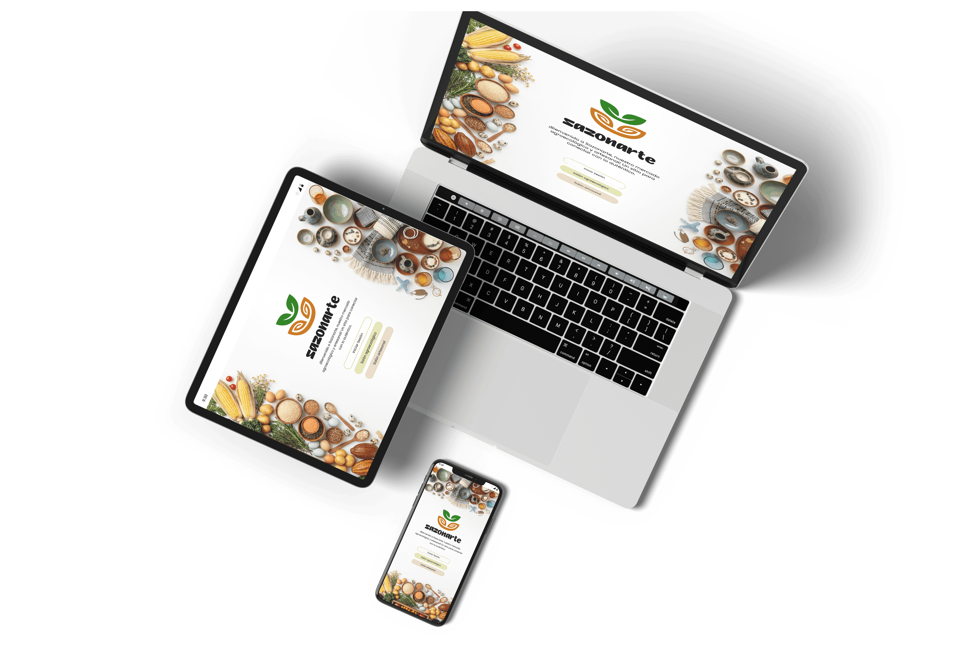 trabajo escolar que consistía en el diseño de una página web responsive de un mercado sobre la compra de productos artesanales y agroecológicos con entrega a domicilio en toda Cuba. Se lo que vas a decir (las imágenes son IA), quiero aclarar que si fuera un proyecto real si se realizara un trabajo fotográfico.